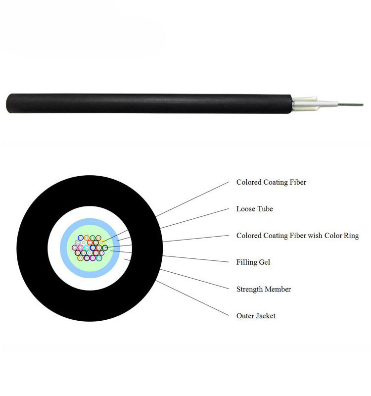 يتم وضع الألياف ، 250 ميكرومتر ، في أنبوب فضفاض مصنوع من بلاستيك عالي المعامل.تمتلئ الأنابيب بمركب تعبئة مقاوم للماء.فوق الأنبوب.يتم استخدام مادة مانعة لتسرب الماء للحفاظ على الكبل مانع لتسرب الماء.يتم وضع اثنين من البلاستيك المقوى بالألياف المتوازية (FRP) على الجانبين.يتم استكمال الكابل بغلاف بولي إيثيلين (PE).